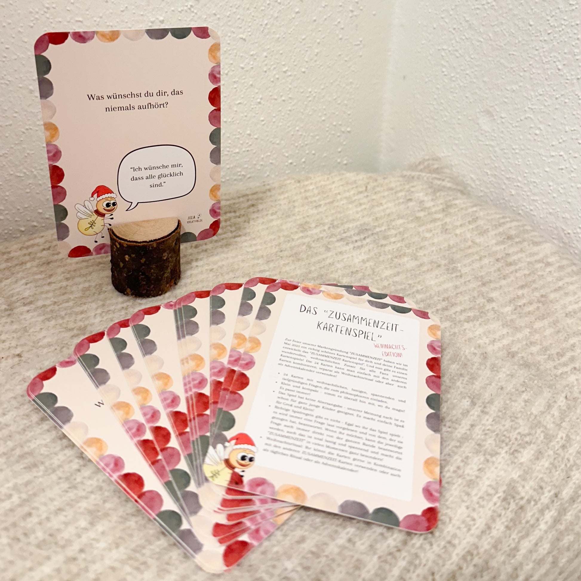 Zur Feier unserer Markengründung “ZUSAMMENZEIT” haben wir im Mai 2025 ein richtig schönes Kartenspiel für dich und deine Familie entwickelt: das “ZUSAMMENZEIT-Kartenspiel”. Und nun gibt es einen wundervollen, weihnachtlichen Zusatz für alle Fans unseres Kartenspiels! Die 24 Karten kann man einfach mit den anderen Karten kombinieren, separat als Weihnachtsritual oder aber auch als Adventskalender verwenden!