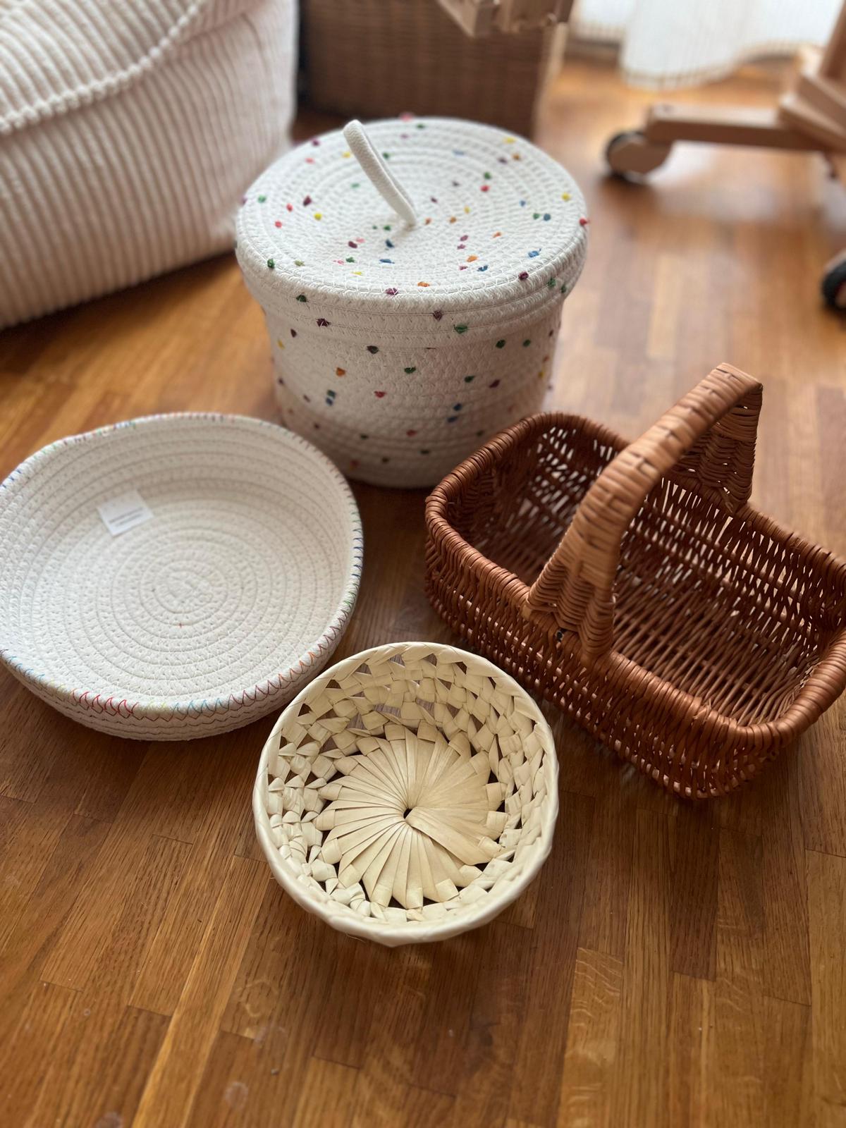 Sie hat ihre liebsten Körbchen aus meinem Shop ausgewählt und für dich ihr persönliches Körbchen-Set zusammengestellt. Das Set ist perfekt durchdacht, denn darin finden sich verschiedene Formen und Farben, sodass für jede Gelegenheit etwas dabei ist - zum Sortieren von Spielsachen, zum ansprechenden Präsentieren von neuen Spielideen oder auch einfach zum Einkaufen.