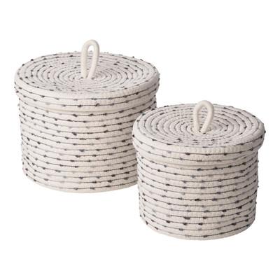 Diese schönen Körbchen mit Deckel fügen sich durch die dezenten, grauen Punkte einfach in jedes Zimmer ein. Mit dem praktischen Deckel sind alle Dinge schön verstaut.