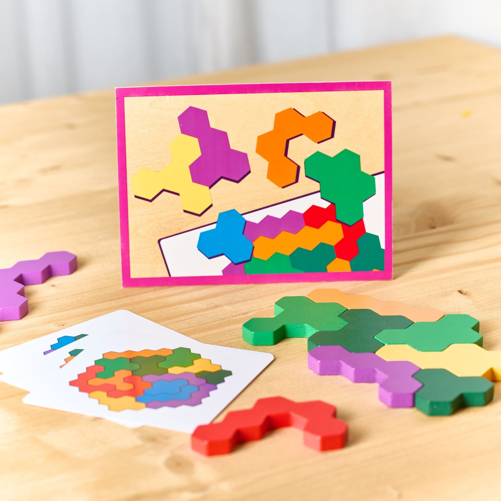 Mit diesem Logik-Puzzle lernt dein Kind ganz spielerisch verschiedene wertvolle Fähigkeiten. Beim Nachlegen der Vorlagen oder auch beim kreativen Legen werden Konzentration, Hand-Auge-Koordination und vernetztes Denken gefördert. Und das wichtigste: Es macht einfach Spaß!